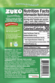 - To make 1 Glass: add only 1 and a half tablespoon of Zuko (17g/0 6 Oz) to a glass of cold water (360ml/12Oz) and stir to dissolve.